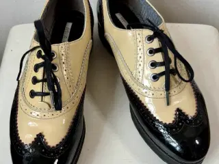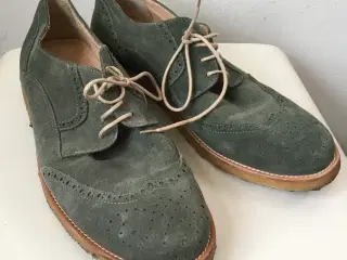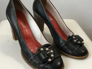 Superflotte sko - helt igennem i skind / stand er et sted mellem "Næsten som ny" og "God, men brugt" Den indvendige længde er 26 cm, hælen er 2 cm høj, det bredeste sted er 8 cm Bud fra kr 1500 plus porto Afhentning: København, Østerbro