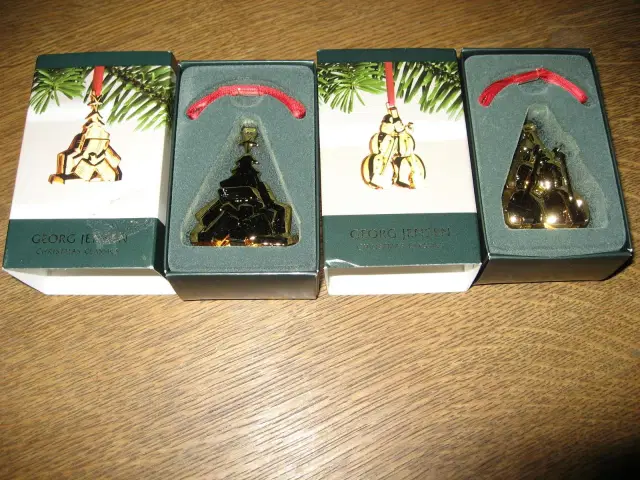 Georg Jensen Årets Julepynt 2007 - Juletræ med Gavepakker og Snemænd fra 2007 - ubrugte og i æsker, sælges pr stk 225,-