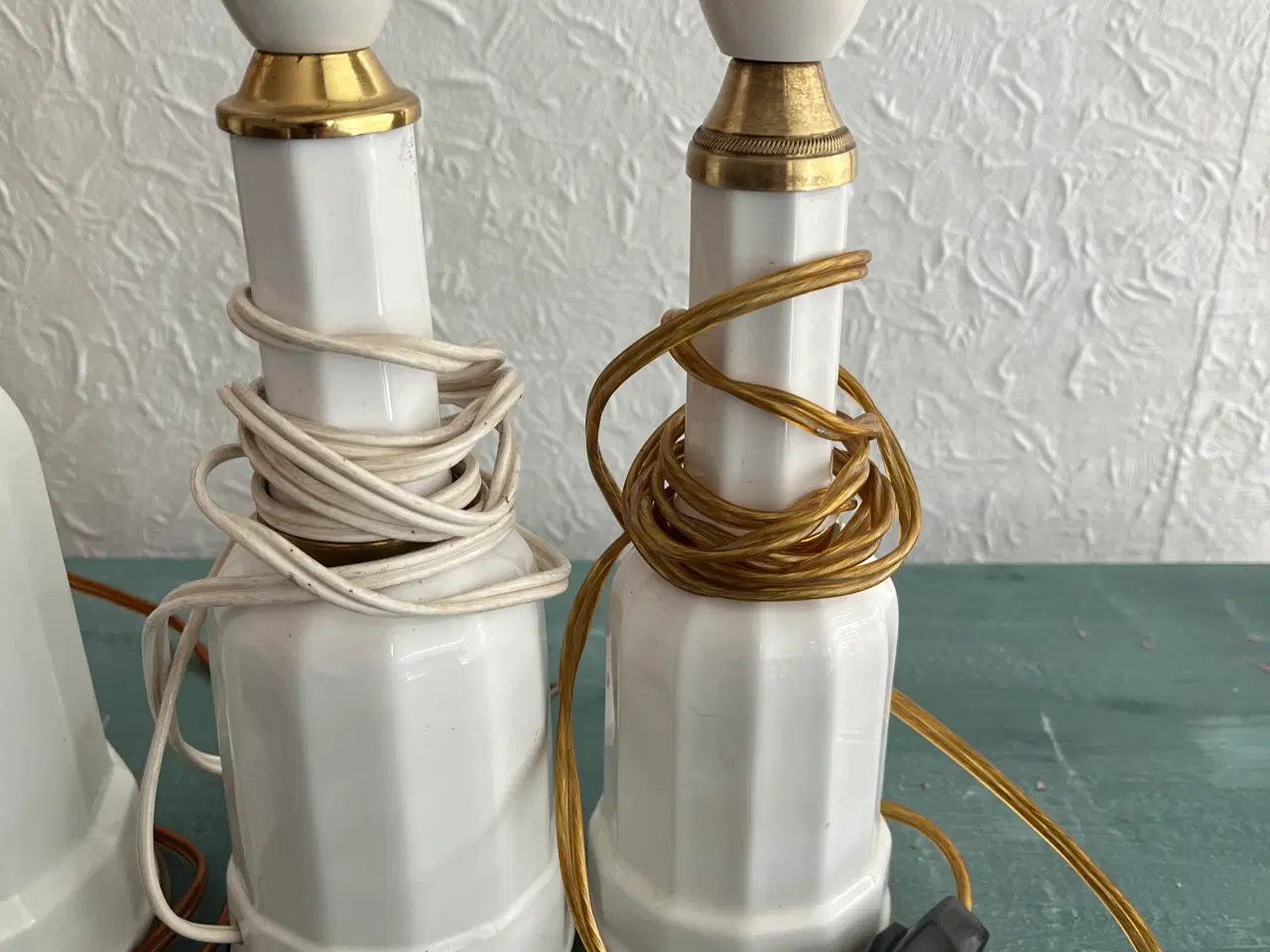 3 X Heiberglamper sælges samlet for kr.650:- eller pr.stk for kr.250:-. Den store lampe er 34,5 cm høj og de andre er 27,6 cm og 27 cm høj. På den ene står der Søholm i bunden.