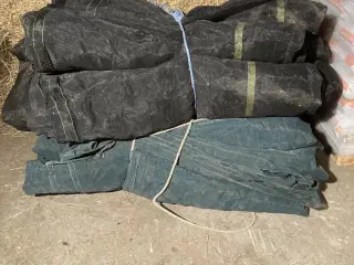 det er bygget af 2 jernbanevogne af stål med fanggitter. Taget er 4 gitterspær, der er påboltet vognen. Sælges som beset og køber må selv nedtage det. Taget er stål åse med stålplader. Hallen er ikke ikke forankret, men står blot på punktfundamenter.