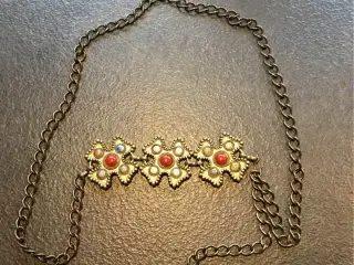 Taljebælte, mørkegrønt læder, L:76cm x B:9cm, syet som vareprøve af syerske, fra røg/dyrefrit miljø, sælges