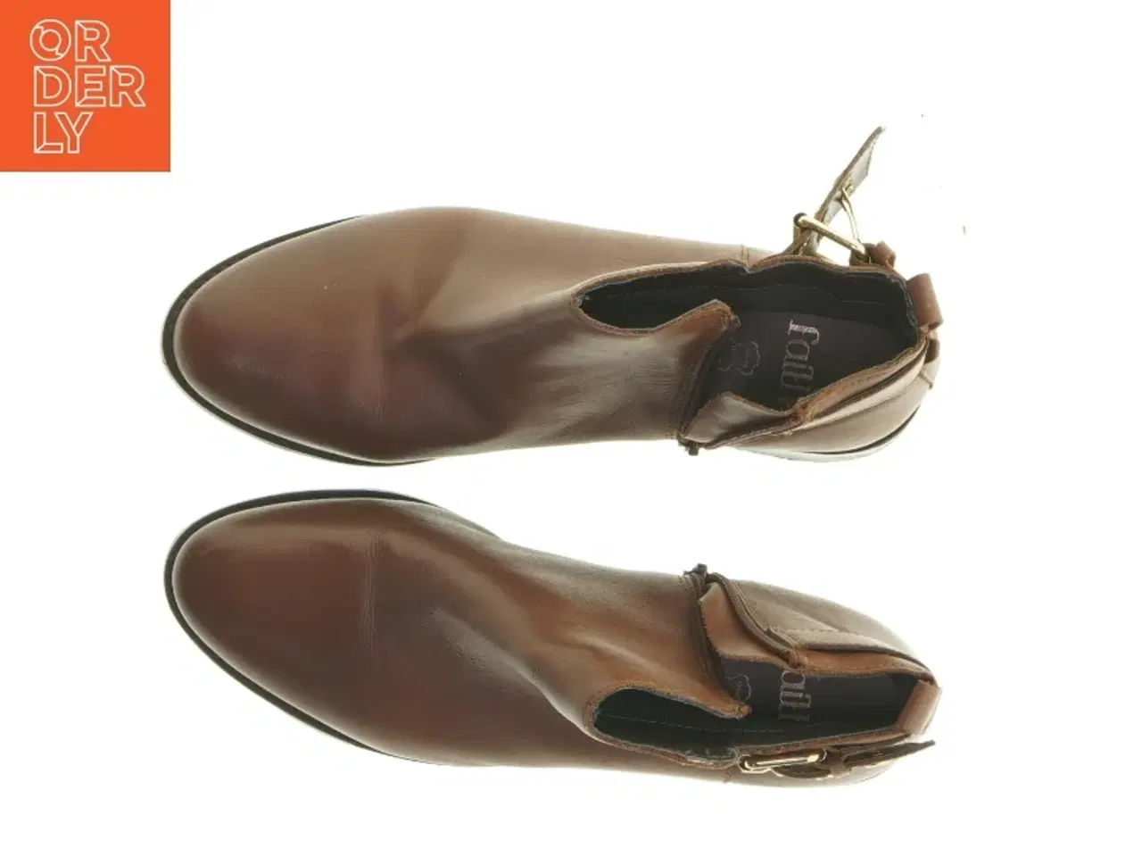 Klik på 'Se annoncen hos forhandleren' for at se varen i vores webshop Et par dame ankelstøvler i størrelse 40, lavet af brun læder. Støvlerne har en dekorativ spænde på siden og en lynlås for nem på- og aftagning. Sålen er lavet af gummi og viser tegn på anvendelse. Indersiden ser ud til at være polstret for komfort. Der er mærket 'Fortuin' på indersålen. Brand: Ukendt Farve: Brun Stand: 60 - Varen har mindre spor fra almindelig brug (Se billeder) Vi sender til hele landet for 49 kr. Leveringstiden er 1-3 hverdage. Du kan også gratis hente den på vores lager på Industrivej 10 i Slangerup. Er du i tvivl om varen stadig er til salg? Klik på knappen "Se annoncen hos forhandleren" for at se den i vores webshop. Kan du se den der, er den stadig til salg Orderly er en ny måde at købe brugt på. Vi har alle vores sælgeres ting på vores centrale lager. Derfor kan du være helt sikker på at få dine ting - og du kan samle flere ting på tværs af sælgere og kun betale én gang fragt.