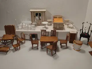 20 dele vintage dukkehusmøbler i god stand. Alle er i træ undtagen en seng, som har metalstel og blå seng, som er i plastik. En kommode er mærket Torslow Denmark (se foto) Sælges KUN samlet.