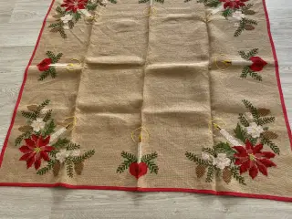 Gul dug med mønster af små firkanter, - det 1. billede viser bedst farven. Dug : 248 x 152 cm 8 stk servietter : 37 x 38 cm Desuden medfølger 2 stk stof af samme slags : Begge med målene : L 120 x B 152 cm