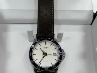Dansk: Flot vintage herreur fra Tissot Seastar Automatic. Et klassisk schweizisk mekanisk ur, som ikke bruger batteri, men går ved automatisk optræk. Uret har en elegant forgyldt urkasse, sølvfarvet urskive med datovisning samt originale visere og timemarkeringer. Remmen er en fleksibel Speidel stretch-rem i guld/sølv-look, som passer de fleste håndled. Uret måler cirka 35–36 mm i diameter ekskl. krone. Standen er pæn i forhold til alderen med almindelige brugsspor på kasse og rem. Bagsiden er glat uden gravering og glasset fremstår uden større ridser. Uret er ikke funktionstestet og sælges derfor som ubekræftet eller til samleren, der kan give det en service. Et smukt og eftertragtet samlerur fra en anerkendt schweizisk producent, perfekt til vintageelskeren eller dig, der elsker klassiske mekaniske ure. English: Beautiful vintage Tissot Seastar Automatic men’s wristwatch. A classic Swiss mechanical model that winds automatically and does not require a battery. It features a gold-tone case, silver dial with date display, and original hands and markers. The watch comes with a Speidel stretch bracelet in gold/silver tone, suitable for most wrist sizes. The diameter is approximately 35–36 mm excluding the crown. Cosmetically in good vintage condition with normal signs of age on the case and bracelet. The back is smooth with no engraving. The movement has not been tested, so the watch is sold as unverified or for collectors who may want to service it. A stylish and collectible Swiss vintage timepiece, ideal for enthusiasts and lovers of classic mechanical watches.
