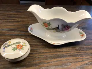 produceret 1934 - 1967. Design Nils Thorsson. Følgende dele til det smukke Morgenfrue spisestel fra Aluminia sælges. Alt er yderst velholdt, uden skår eller andre defekter: Stort rundt fad, diameter 34 cm. Pris 200 kr 2 kartoffelskåle, måler 30 x 23 cm. Pris 150 kr. pr. stk. Sovsekande. Pris 150 kr. Stort ovalt fad, måler 33 x 24 cm. Pris 150 kr. Ovalt fad, måler 28 x 20 cm. Pris 100 kr. 4 tallerkener, diameter 15,5 cm. (SOLGT). Sendes gerne.