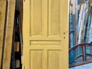 Meget flot udført fyldningsdør. Særligt smukke fyldninger med riller, flotte udskæringer og detaljerede profiler. Fremstår i god stand - blot med afskallende maling. Uden greb og nøgleskilte. Døren er højrehængt. Med ny karm og nye hamborghængsler. De angivne mål er inkl. karm. Se også venstrehængt variant. Bredde: 88 cm, højde: 211.4 cm. På lager: 1 Vi har over 6.000 vinduer og døre på lager ved Roskilde. Se derfor også vores andre annoncer eller vores hjemmeside via link her på siden. Søgeord: -------- Brugte døre Gamle døre Brugte døre Klassiske døre