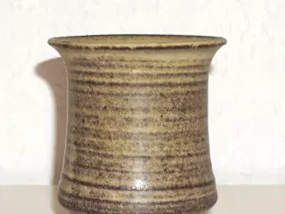 Lækker vase i stentøj med glasur i grålige nuancer. Vasen er signeret, men jeg kan ikke tyde signaturen. Vasen er i flot og fejlfri stand - uden ridser, revner, skår eller lign. Vasen måler 13 cm. i diameter og den er 10,5 cm. høj. Vægt: 575 gram. Sender gerne - Fragten tillægges varens pris. Mobilepay, kontanter og bankoverførsel modtages.