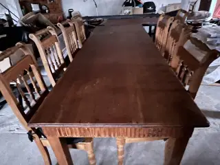 6 antikke egetræs stole med lædersæder. God kvalitet..
