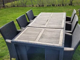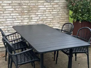 Dette stilfulde og behagelige loungesæt til haven er et ideelt valg, når du vil slappe af og nyde vejret, tage en lur, eller når du vil sidde og snakke med familie og venner. - Slidstærkt materiale: Polyrattan er vejrbestandigt og let at rengøre. Det forbliver smukt i længere tid. Det er mere økonomisk end andre materialer, samtidig med at det tilbyder fantastisk kvalitet, bekvemmelighed og et æstetisk look. - Stabilt stel: Det pulverlakerede stålstel giver loungesættet robusthed og stabilitet. - Komfortabel siddeoplevelse: Loungesættet til udendørs brug er yderst komfortabelt takket være de tykt polstrede sæde- og ryghynder. - Praktisk bord: Det robuste sofabord er perfekt til at holde dine drinks, mad eller pyntegenstande. Bemærk: - Vi anbefaler, at du beskytter dine udendørs møbler med et vandtæt overtræk for at sikre, at de forbliver smukke. - U-formet sofa: - Farve: Sort - Materiale: Polyrattan, pulverlakeret stål - Mål: 238 x 110 x 66 cm (B x D x H) - Sædemål: 110 x 55/108 x 55 cm (B x D) - Sædehøjde fra gulvet: 34 cm - Armlænets højde fra gulvet: 55 cm - Maks. bæreevne (pr. sæde ): 110 kg - Sofabord: - Farve: Sort - Materiale: Polyrattan, pulverlakeret stål, hærdet glas - Mål: 50 x 50 x 28,5 cm (B x D x H) - Hynde: - Farve: Sort - Materiale, parasoldug: Stof (100 % polyester) - Fyldmateriale, sædehynde: Skum - Materiale, pudefyld: PP-bomuld - Mål, sædehynde: 55 x 55 x 3 cm (B x D x T) - Mål, pude: 55 x 43 cm (L x B x T) - Montering/samling påkrævet: Ja - Pakken indeholder: - 1 x U-formet sofa - 1 x sofabord - 6 x sædehynde - 4 x pude