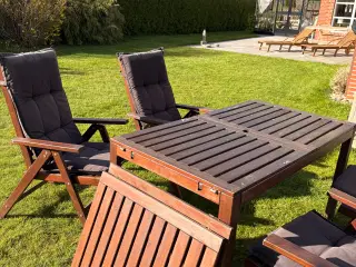 Dette stilfulde og behagelige loungesæt til haven er et ideelt valg, når du vil slappe af og nyde vejret, tage en lur, eller når du vil sidde og snakke med familie og venner. - Slidstærkt materiale: Polyrattan er vejrbestandigt og let at rengøre. Det forbliver smukt i længere tid. Det er mere økonomisk end andre materialer, samtidig med at det tilbyder fantastisk kvalitet, bekvemmelighed og et æstetisk look. - Stabilt stel: Det pulverlakerede stålstel giver loungesættet robusthed og stabilitet. - Komfortabel siddeoplevelse: Loungesættet til udendørs brug er yderst komfortabelt takket være de tykt polstrede sæde- og ryghynder. - Praktisk bord: Det robuste sofabord er perfekt til at holde dine drinks, mad eller pyntegenstande. Bemærk: - Vi anbefaler, at du beskytter dine udendørs møbler med et vandtæt overtræk for at sikre, at de forbliver smukke. - U-formet sofa: - Farve: Sort - Materiale: Polyrattan, pulverlakeret stål - Mål: 238 x 110 x 66 cm (B x D x H) - Sædemål: 110 x 55/108 x 55 cm (B x D) - Sædehøjde fra gulvet: 34 cm - Armlænets højde fra gulvet: 55 cm - Maks. bæreevne (pr. sæde ): 110 kg - Sofabord: - Farve: Sort - Materiale: Polyrattan, pulverlakeret stål, hærdet glas - Mål: 50 x 50 x 28,5 cm (B x D x H) - Hynde: - Farve: Sort - Materiale, parasoldug: Stof (100 % polyester) - Fyldmateriale, sædehynde: Skum - Materiale, pudefyld: PP-bomuld - Mål, sædehynde: 55 x 55 x 3 cm (B x D x T) - Mål, pude: 55 x 43 cm (L x B x T) - Montering/samling påkrævet: Ja - Pakken indeholder: - 1 x U-formet sofa - 1 x sofabord - 6 x sædehynde - 4 x pude