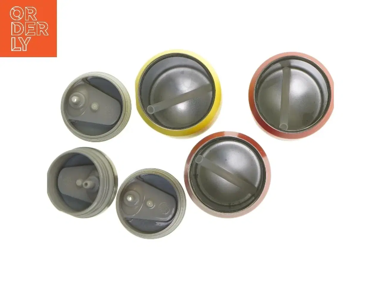 Sættet består af tre isolerede drikkedåser i farverne gul, rød og en med tryk. Hver dåse ligner en almindelig sodavandsdåse men har et skruelåg med drikketud, hvilket gør dem velegnede til genanvendelig brug ved opbevaring af kolde eller varme drikke. De er designet af Les Artistes, og måler Ø 7x13,5 cm. Klik på 'Se annoncen hos forhandleren' for at se varen i vores webshop Brand: Les Artistes Farve: gul Stand: 60 - Varen har mindre spor fra almindelig brug (Se billeder) Vi sender til hele landet for 49 kr. Leveringstiden er 1-3 hverdage. Du kan også gratis hente den på vores lager på Industrivej 10 i Slangerup. Er du i tvivl om varen stadig er til salg? Klik på knappen "Se annoncen hos forhandleren" for at se den i vores webshop. Kan du se den der, er den stadig til salg Orderly er en ny måde at købe brugt på. Vi har alle vores sælgeres ting på vores centrale lager. Derfor kan du være helt sikker på at få dine ting - og du kan samle flere ting på tværs af sælgere og kun betale én gang fragt.