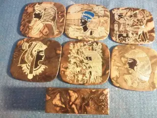 6 Smukke Thistle Down Coastere med Tam O'Shanter motiv fra Skotland I ægte læder. I grøn og guld og med forskellige historier Sender gerne såfremt køber betaler