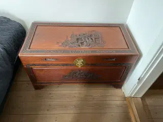 Vores fantastiske skattekiste/opbevaringskasse i træ vil helt sikkert give ethvert rum et strejf af vintagestil. Den kan også bruges som et sofabord. Det smukke håndværk kombineret med designet i vintagelook gør den til et perfekt midtpunkt i rummet. Ud over de dekorative funktioner giver denne kiste dig god opbevaringsplads til tøj, sengetøj, bøger og meget andet. Den har en lås på forsiden, så den er nem at åbne og lukke, og to sidegreb til at gøre den bærbar. Kisten er fremstillet i en høj standard. Den vil være en flot og praktisk tilføjelse til dit hjem i mange år. - Farve: Sort - Mål: 90 x 51 x 42 cm (L x B x H) - Materiale: Krydsfinér