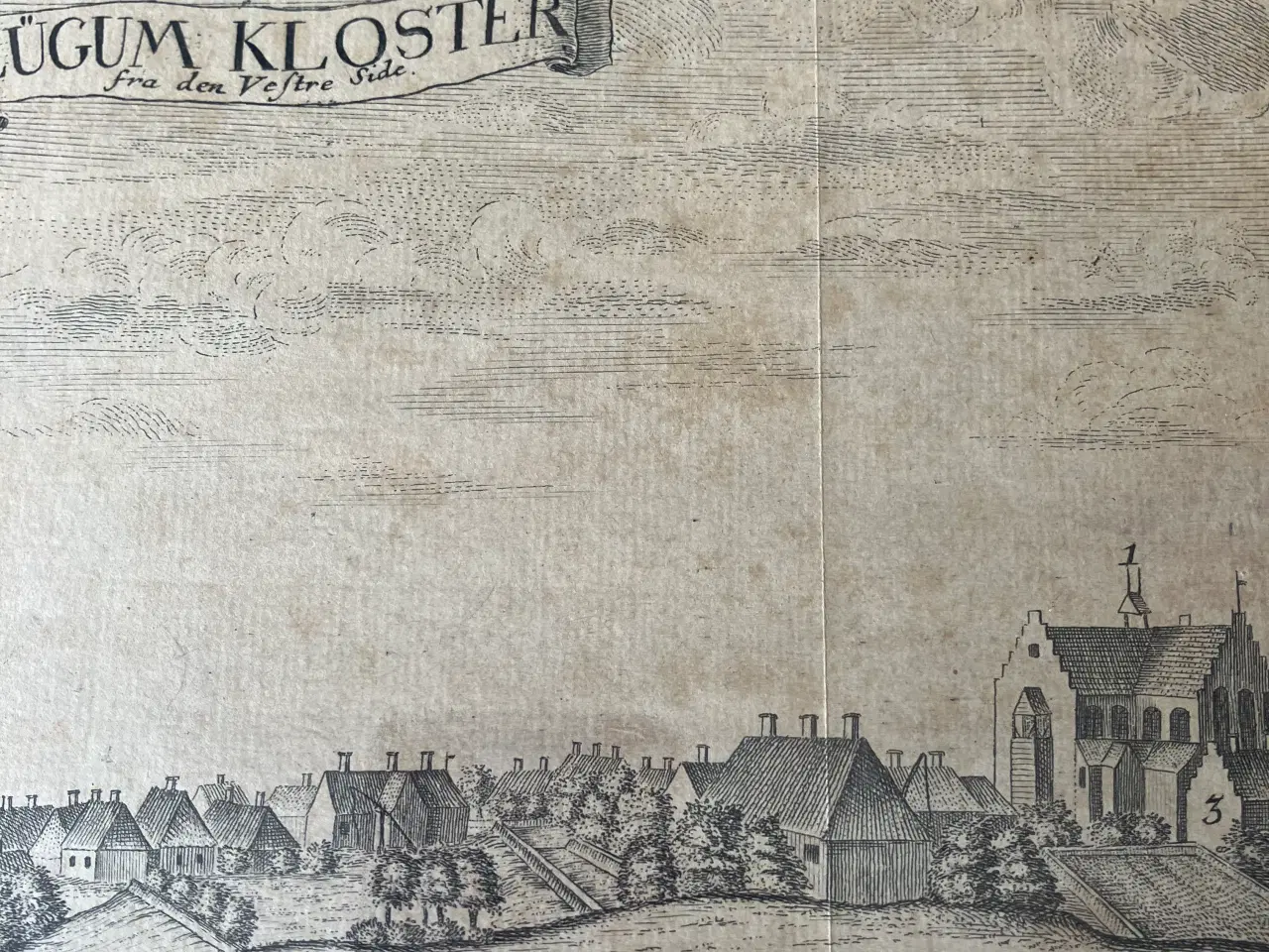 Gammelt indrammet tryk af Løgumkloster. 37x24 cm. 150kr se også Randers, Flensborg og Slesvig. 4 samlet 500kr