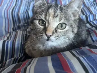 Vi har den dejligste pigemis til salg. Vi har valgt at finde et nyt hjem til hende fordi hun ikke trives med at være indekat. Hun har både været inde/ude kat her, men fordi vi bor hvor der er rigtigt meget trafik lukker vi hendes ikke ud i frygt for at blive kørt ned. Hun vil elske at komme ud hvor der er mulighed for selv at gå ind og ud eller i hvert fald have mulighed for at komme ud når hun gerne vil :) Hun bliver 3 her d. 11 Marts. hun er steriliseret, renlig og en dejlig kat. Men også meget selvstændig kat og er ikke vildt med at blive løftet rundt. Hun bor pt med en anden kat, en hund og børn så det kan hun også godt :) Hun er sat til 1.000 men prisen kan godt forhandles ved det rette hjem.