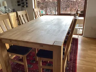 Unikt sæt tegnet og produceret i Danmark. Marmorbordplade på rustfrit stålstel + 6 stole designet dertil