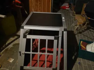 Solidt Galvanisert stål hundebur/dyrebur/transportbur Rengøringsvenlig med fast udtrækkelig bakke/bund Transportvenlig, kan klappes sammen. Sælges afhentet og som på billederne. ca. mål... L=62cm B=46cm H=54cm