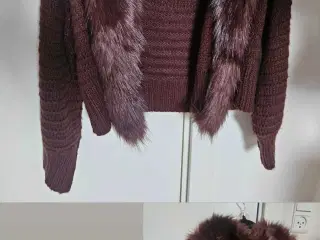 Flot håndstrikket trøje/cardigan med knapper. 100 % bomuld. Mål : brystvidde 102 cm., længde på ryg 60 cm., ærmelængde (selve ærmet) 48 cm.