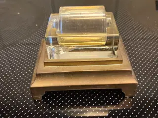 Min oldefars skriveartikler med frimærkefugter. Lysestagen var ikke ikke en del af sættet, men følger med alligevel. Sendes med DAO mod forudbetaling og på eget ansvar.