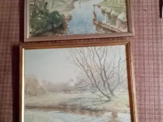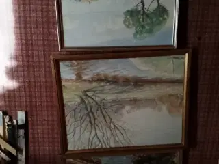 Oliemaleri med 4 personer i varme farver malet af Anita Falbe. Maleriet er rammet ind i en mørkegrå 8,5 cm bred ramme. Maleriet måler 139,5 cm X 138,5 cm.