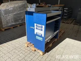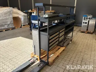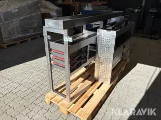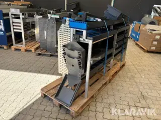 Reol til varebil System Edström - 2 enheder Mærke: System Edström Mål og vægt Længde: 240 Bredde: 80 Øvrige mål: Lål på lille reol: 125x30x112 cm Mål på stor reol: 210x35x115 Breddemål er +beslag Læssehjælp: Læssehjælp efter aftale med sælgeren