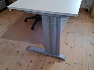 Hjørneskrivebord i lys bøg med indstillelige teleskopben. Hvid stålramme og hvide ben. Højde kan vælges i 7 trin, 70 - 90 cm.b Transport indenfor 10 km kan tilbydes; eller efter aftale. Du hjælper med at læsse på og af. Pris 500kr Ingen billeder, da bordet er usamlet ved opbevaring. Evt. et par stykker pr. tlf.