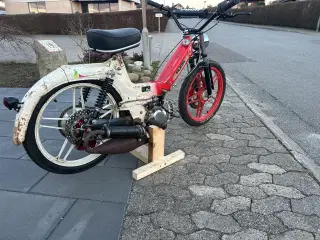 Reservedele i god cykelhandlerkvalitet, hjul fremstilles og motorer renoveres. Forsikringsskader udføres, på eget veteranknallertværksted.