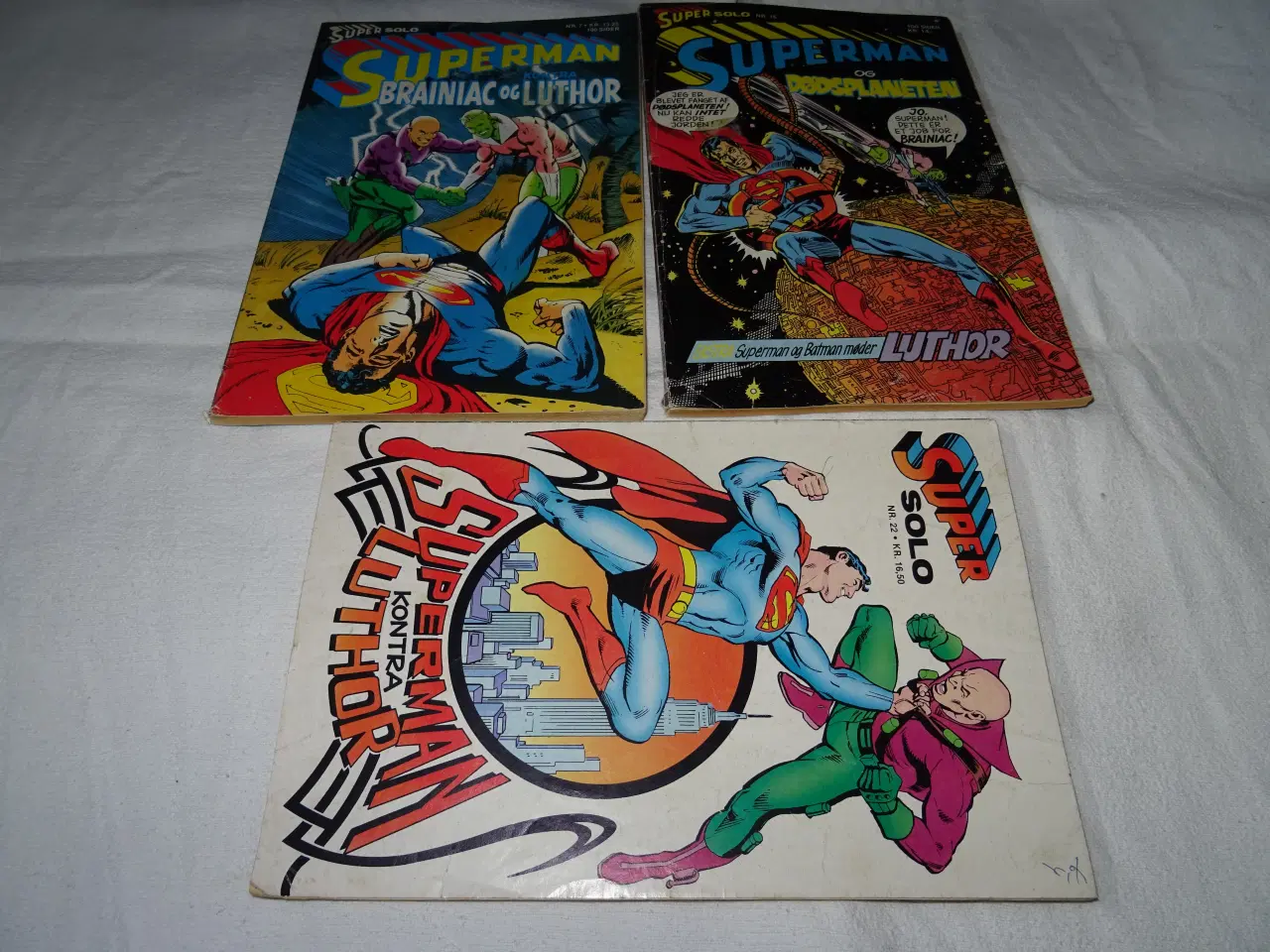 Superman solo 3 stk i god stand , 3 stk 45 enkeltsalg 20 kr stk, nr7 16 og 22 ,se billeder på gul og gratis, skriv skorstensfejeren01 i søgefeltet, og se mine auktioner.