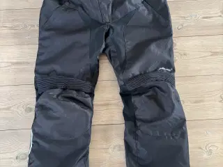 MotoGirl Fio motorcykelbukser i sort til damer. Bukserne er CE-certificerede med AA-klassificering efter EN 17092-3:2020. De er udført i en kombination af tekstil og læderpaneler for øget slidstyrke og komfort. Indersiden har meshfor, som giver ventilation under kørsel. Modellen har bæltestropper, lynlås og knaplukning i taljen samt baglommer. Egnede som beskyttende motorcykelbukser til vej- og touringkørsel. Sender gerne for +56kr (se også mine andre annoncer med mc dele)