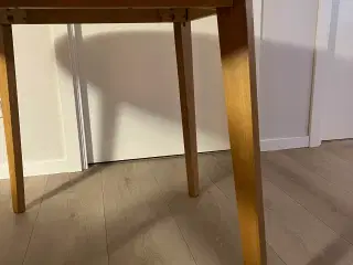 Massiv træ der er malet sort - har brugspor; særligt at bemærke er den hvide “plet” på bordplade - tror det er kommet efter der har stået noget varmt der. Måler 95 i bredde, 180 uden plader; 270 med begge plader på. Skal afhentes i Egtved.