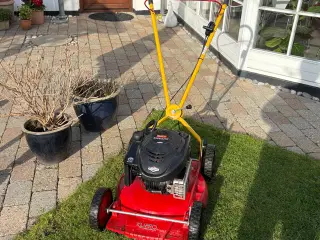 Den har lige fået stort service med nye slebet kniver og nyt olie så den er i topform til din græsplæne