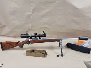 Sælger denne flotte krico/ kvalitets riffel kaliber 308 med lyddæmper og 2 magasiner kikkert gamon 4-12x44 med aftagelige baser den står flot og skyder rigtig godt