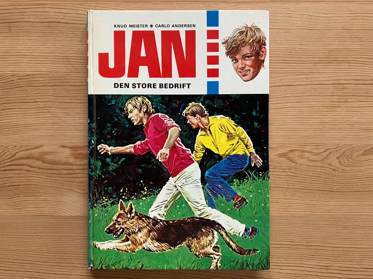 af Knud Meister og Carlo Andersen, alle i hardback. De helt gamle fra 1940'erne og 50'erne, Wangels Forlag A/S: Nr. 14. JAN spiller højt Spil, 1949 Nr. 33. JANs farligste modstander, 1954 Nr. 34. JAN bliver slået ud, 1954 Nr. 56. JAN møder hævneren, 1958 Nr. 79. Det store postrøveri, 1964 Pris 50 kr. pr. stk. Dem fra 1970'erne og 80'erne, Grafisk Forlag: Nr. 1. JAN på sporet, 1972 Nr. 2. JAN i cirkus, 1970 Nr. 3. JAN. Sporet i sneen, 1973 Nr. 4. JAN og drengebanden, 1970 Nr. 5. JAN og havnemysteriet, 1970 Nr. 6. JAN skolens fodboldhelt, 1971 Nr. 7. JAN på skattejagt, 1970 Nr. 8. JAN i fare, 1970 Nr. 9. JAN får travlt igen, 1971 Nr. 10. JAN og de forsvundne perler, 1972 Nr. 11. JAN brug øjnene, 1972 Nr. 12. JAN slår til, 1971 Nr. 13. JAN. Gå på drenge!, 1972 Nr. 14. JAN & Co. ordner alt, 1972 Nr. 15. JAN. Med slukkede lanterner, 1973 Nr. 16. JAN. Jan-klubben, 1973 Nr. 17. JAN som journalist, 1973 Nr. 18. JAN gør sit store kup, 1973 Nr. 19. JAN stiller spørgsmål, 1973 Nr. 20. JAN på højfjeldet, 1973 Nr. 21. JAN til Derby, 1974 Nr. 22. JAN. Den store bedrift, 1974 Nr. 23. JAN bliver slået ud, 1978 Nr. 25. JAN og frømændene, 1975 Nr. 26. JAN sender S.O.S., 1976 Nr. 27 JAN går i fælden, 1976 Nr. 29. JAN overgiver sig aldrig, 1978 Nr. 30. JAN i farligt selskab, 1978 Nr. 33. JAN stævner ud, 1980 Nr. 34. JAN og falskmøntnerne, 1984 Nr. 35. JAN for fuld udblæsning, 1985 Pris 40 kr. pr. stk. (De gamle JAN bøger fra 1940'erne og 50'erne koster 50 kr. pr. stk.) Nr. 2. JAN. Med slukkede lanterner, Sesam, 2006, helt ny. Pris 40 kr. Sendes gerne.
