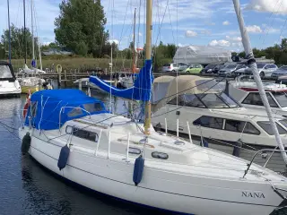 Fin båd fra 1985. En ejer før os (vi har haft den i 4 år). Båden er i god stand og har masser af udstyr. Nyligt udskiftet splash cover. Min mand kan fortælle alt om motor, udstyr, sejl m.v. Vi har ikke brugt så meget som forventet og vil derfor gerne sælge den.