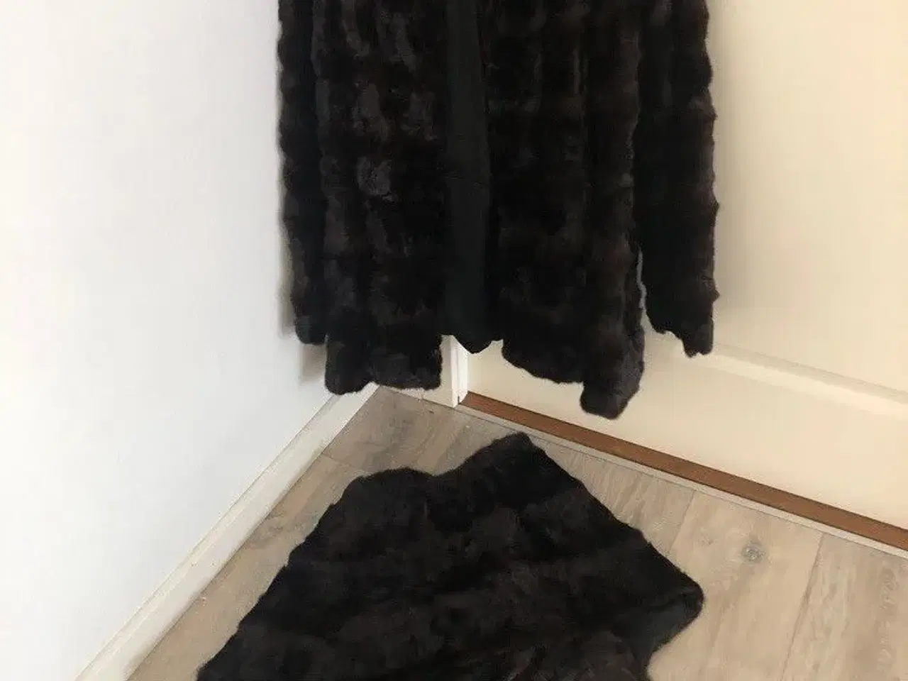 Ældre velholdt pels, med ekstra stykke der kan sættes på eller bruges som sjal.