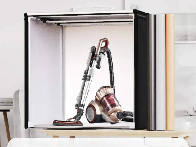 80x80x80 cm stor transportabel fotostudie med justerbar lys. Ideelt til produkt foto af større ting.