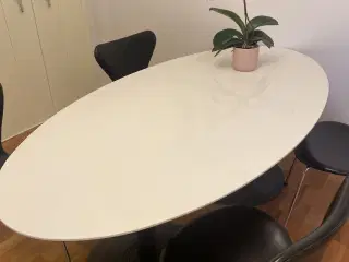 Hvid spisebord med sort kant uden ben
