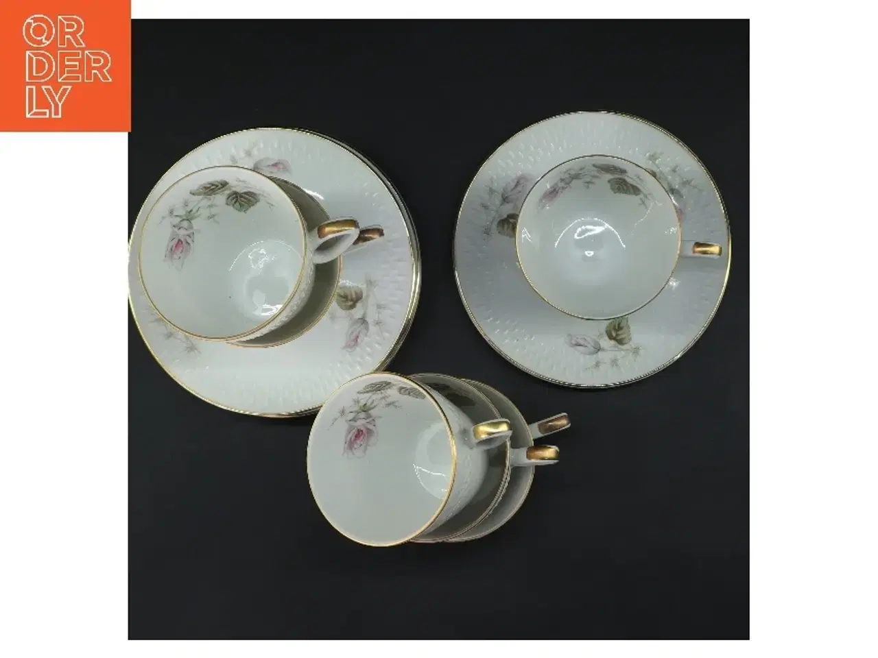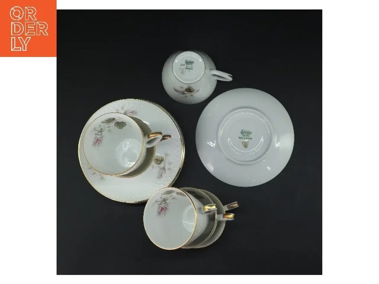 Sæt består af 6 hvid porcelæns kaffekopper med underkopper, dekoreret med en elegant blomsterdesignet samt guldkant. Koppernes diameter er 7,5 cm, og underkoppernes diameter er 13,5 cm. Bunden af kopperne viser mærket 'Edelstein Bavaria'. Ideelt til kaffe eller te servering. Klik på 'Se annoncen hos forhandleren' for at se varen i vores webshop Brand: Edelstein Bavaria Farve: hvid Stand: 60 - Varen har mindre spor fra almindelig brug (Se billeder) Vi sender til hele landet for 49 kr. Leveringstiden er 1-3 hverdage. Du kan også gratis hente den på vores lager på Industrivej 10 i Slangerup. Er du i tvivl om varen stadig er til salg? Klik på knappen "Se annoncen hos forhandleren" for at se den i vores webshop. Kan du se den der, er den stadig til salg Orderly er en ny måde at købe brugt på. Vi har alle vores sælgeres ting på vores centrale lager. Derfor kan du være helt sikker på at få dine ting - og du kan samle flere ting på tværs af sælgere og kun betale én gang fragt.
