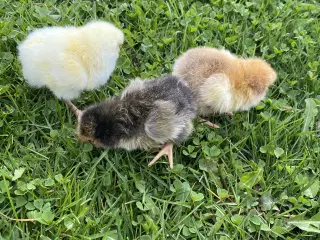 Daggamle kyllinger klækket d 24/4 2026 , lys sussex 40 kr pr stk, Bielefelder hønekyllinger 60 kr pr stk, alle stor race. Mere info på 24276940.