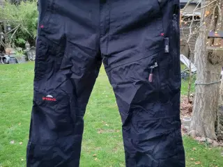 Flot vinterjakke/skijakke, str. 12 år, i super fin stand. Farven er mørkeblå/navy blå med lysegrøn lynlås og detaljer. Jakken har aftagelig hætte, 3 lommer med lynlås, snefang i ærmer samt I bunden af jakken. Ved køb af jakken kan et par Highlander skibukser, str. 152, i farven sort medfølge. Bukserne har to lommer med lynlås, samt snefang og lynlås i benene. Bukserne er tydeligt brugte, men fuldt ud anvendelige til mange timers udendørs leg. På billeder af jakke og bukser ser det ud som om begge dele er falmet i midten af billederne. Dette er ikke tilfældet, men noget som mit kamera desværre finder på, for at tilføje lys til billeder.