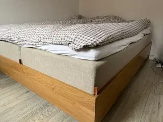 Kurve rattan flet sengegavl Fin stand, men med patina og trænger til en rengøring Højde: 110 cm Bredde: 185 cm