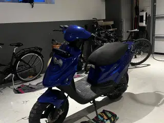 Alle originale dele medfølger samt 5 liter 2% benzin og en liter olie. Service bog og original kvittering medfølger også. Kun 2 ejer, den første var en ældre dame. Der er også et lilla skjoldsæt med nogle skader. Fin hot 50 fra 2017. Har kørt 12.000 km Alt virker som det skal Opsætning: Dr 70cc Polini gg Polini kobling 19mm cp Malossi multivar Køre 75 til 80 km/t
