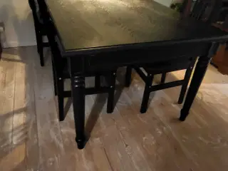 Let brugt spisebord sælges grundet flytning. Bordet har enkelte hakker. Der medfølger 2 tillægsplader som vil sige at bordet kan forlænges med 96 cm. Bordet skal selv bæres ned fra 1.sal