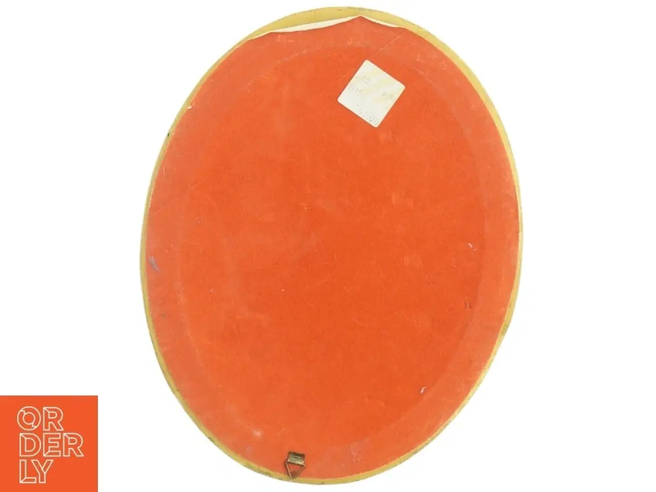 Rundt spejl i guldramme med rød filt bagside (str. 30 x 23 cm)