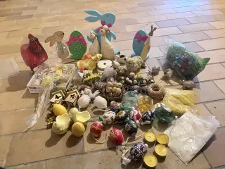 Div. Påsketing Rund dug Ø 57 CM/SOLGT 2 kyllinger ca 10-11 cm + 2 små kyllinger + 3 legokyllinger stor kyllinge potte ca 9 cm + 2 små kyllingepotter ca 6,5 cm 6 gule træ æg + 4 grønne æg - 2 gule og 2 grønne harer 2 påskestearinlys 4,5 cm + 3 metalæg 4 cm + 1 pind me kylling 4 sommerfugle + 3 påskelilje hoveder + påskeophæng 1 kasse med fjer - 6 fjer på pind 2 påskeophæng 24 cm og 29 cm