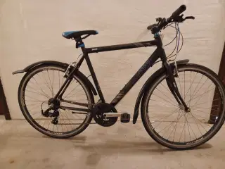 En meget god SCO herrecykel med 21 gear. Str. 58cm. Stelnr. WBL44652L.(583). Har lige fået ny kæde, nyt gear, nyt tandhjul i bag, nye bremser, nye skærme, står som ny. Kr.1.995,-