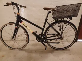 I fin stand - fungerer som den skal. - 3 gear samlet. - Bremser og dæk er gode. - Lygter følger med. - Lås og nøgle følger med. Cyklen har almindelige brugsspor hist og her, men ikke noget af større betydning. Kan også fragtes, hvis det er i nærområdet.