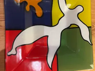 Flor og farverigt fad i glas. Måler ca. 22 cm.