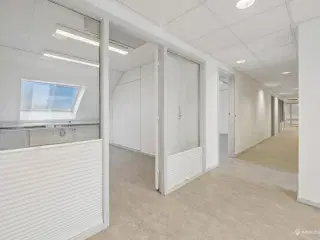 Lejemål med kontor, tekøkken og stort højloftet lager udlejes. Fra lageret er der udgang via elektrisk sikkerhedsport til læsserampe. Lofthøjde i lageret 4,42 - 6,5 m. Adgangen til lager/produktion sker via læsserampe eller dør direkte til kontorafsnittet. Kontoret har tekøkken og bad samt to toiletter, klinkegulv for nem rengøring samt troldtektlofter for god akustik.